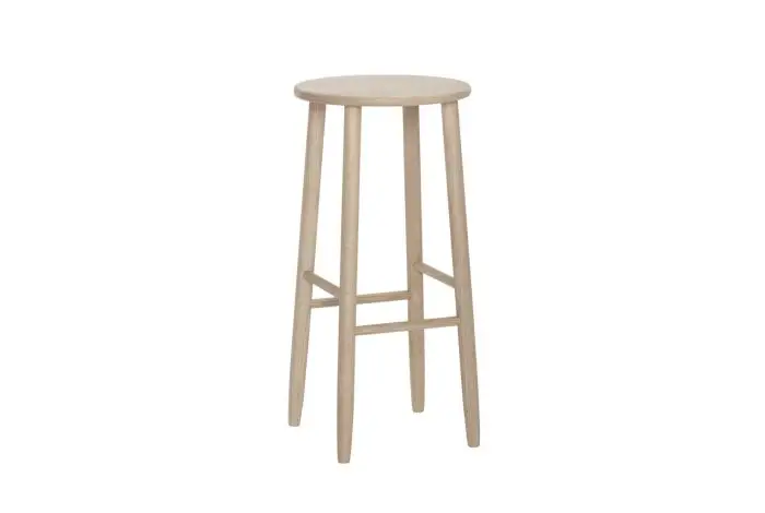 Flot barstol i natur/ egetræ, medsæde i naturtræ. Barstolen fremstår både simpel og unik. Udover at kunne anvende den som barstol, fungere den også godt som en blomsteropsats til enten nogle af havens blomster, eller som en opsats til en stor grøn hængeplante. Barstolen har altså en multifunktionalitet, i og med den har det enkle design med sig.